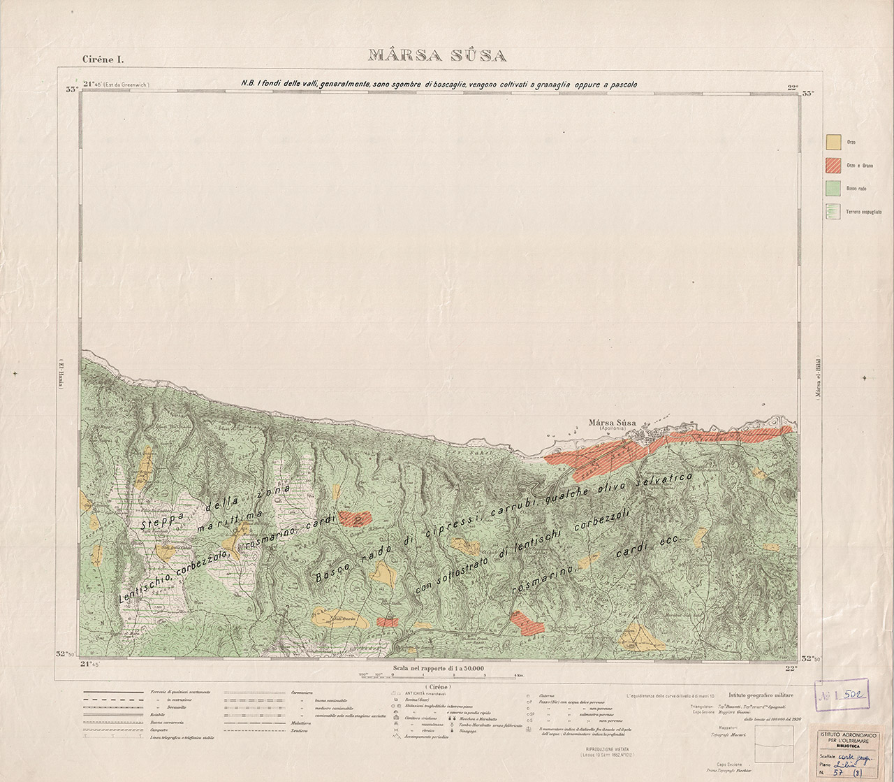 Dalle levate al 100.000 del 1920. Triangolatori: Top. fo Piacenti. Top. fo straord. rio Spagnoli. Capo Sezione: Maggiore Gianni. Mappatori: Topografo Macari. Capo Sezione: Primo Topografo Fiechter.