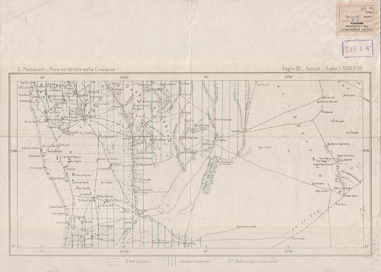 Carta delle risorse idriche con indicazioni delle zone con pozzi, cisterne e laghi temporanei.