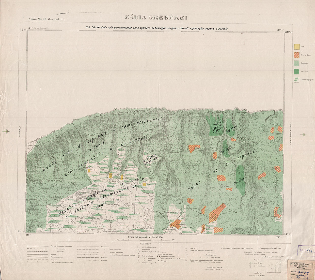 Dalle levate al 100.000 del 1920. Triangolatori: Top.fo: Sgrilli. Top.fo.straor.rio: Spagnoli. Capo Sezione: Maggiore Gianni. Mappatori: Capitano Scarfi. Capitano Lavizzari. Capo Sezione: Primo Topografo Fiechter.