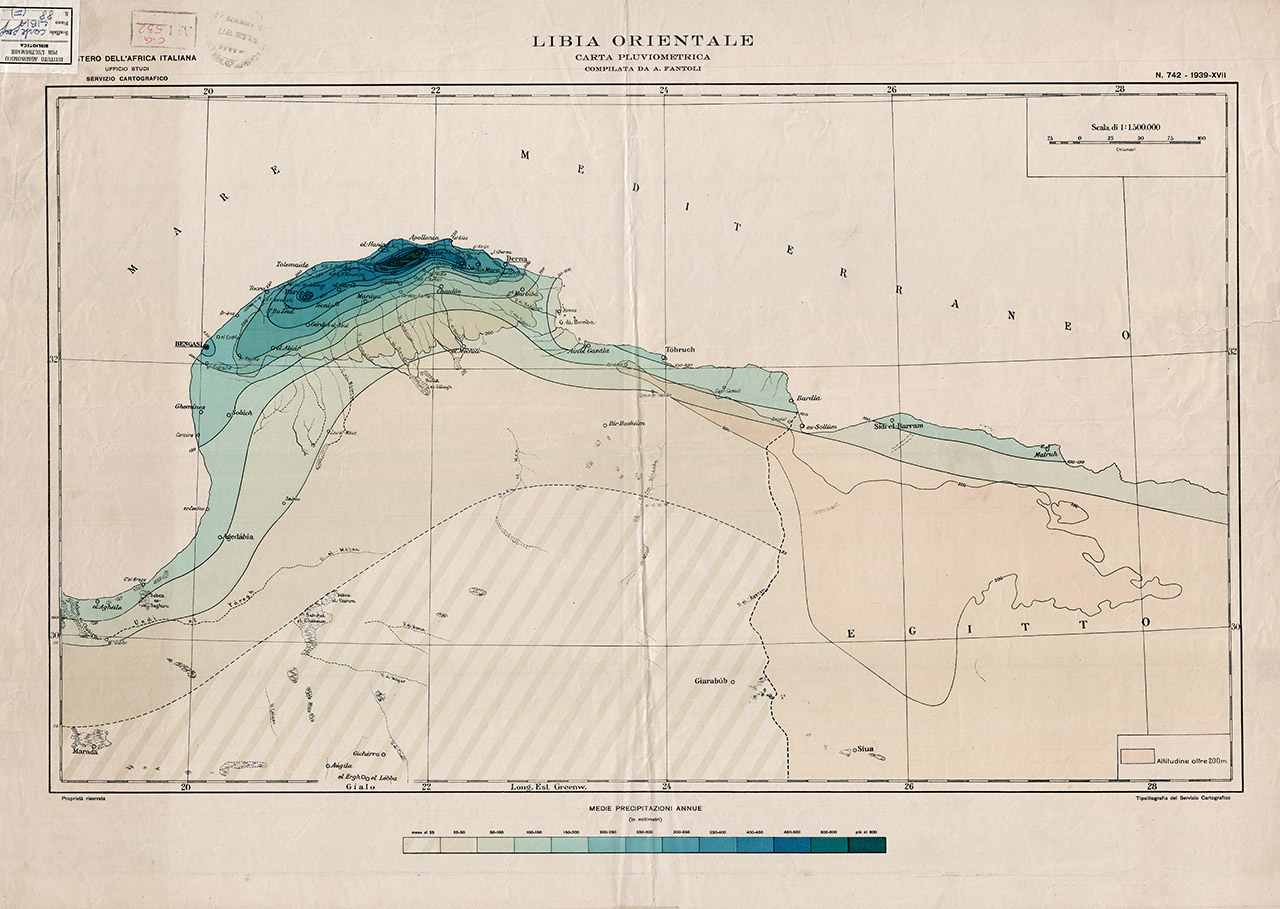 Carta pluviomentrica della Libia Orientale, compilata da A. Fantoni.
